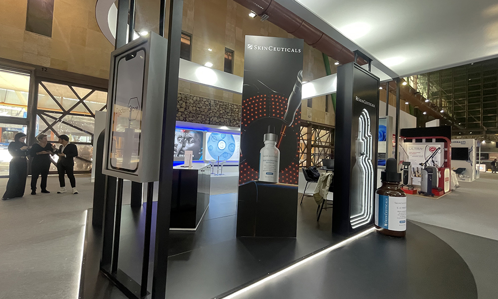 Arquitectura abierta, iluminación escenográfica y una narrativa visual impecable convirtieron este punto de encuentro en una referencia dentro del congreso líder en medicina estética.